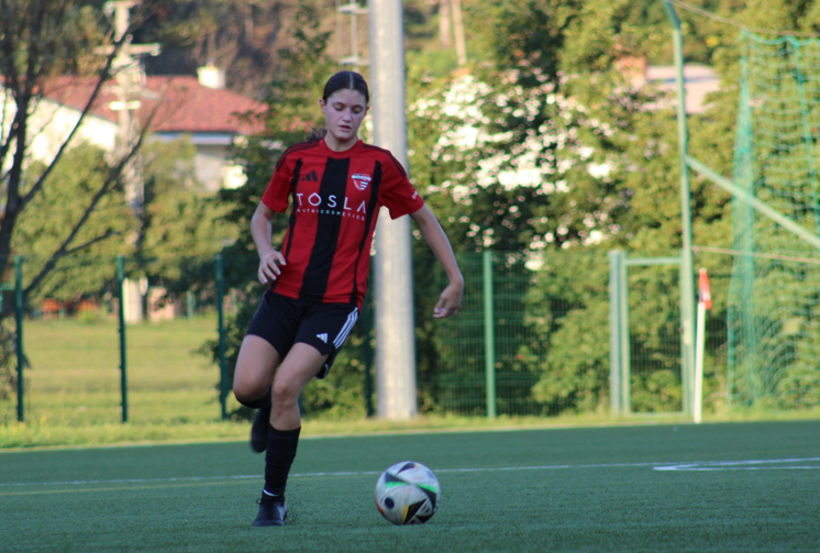 V prvem polčasu so rdeče-črne pokazale svojo razpoloženost pred vrati nasprotnic. Vodstvo je odprla Vita Mamić, ki je izkoristila lepo podajo in mirno zadela. Kmalu zatem je rezultat, z natančnim strelom, povišala Naja Rožič. Punce so držale visok ritem, si ustvarjale številne priložnosti in nasprotnicam skoraj niso dovolile nevarnih prodorov.